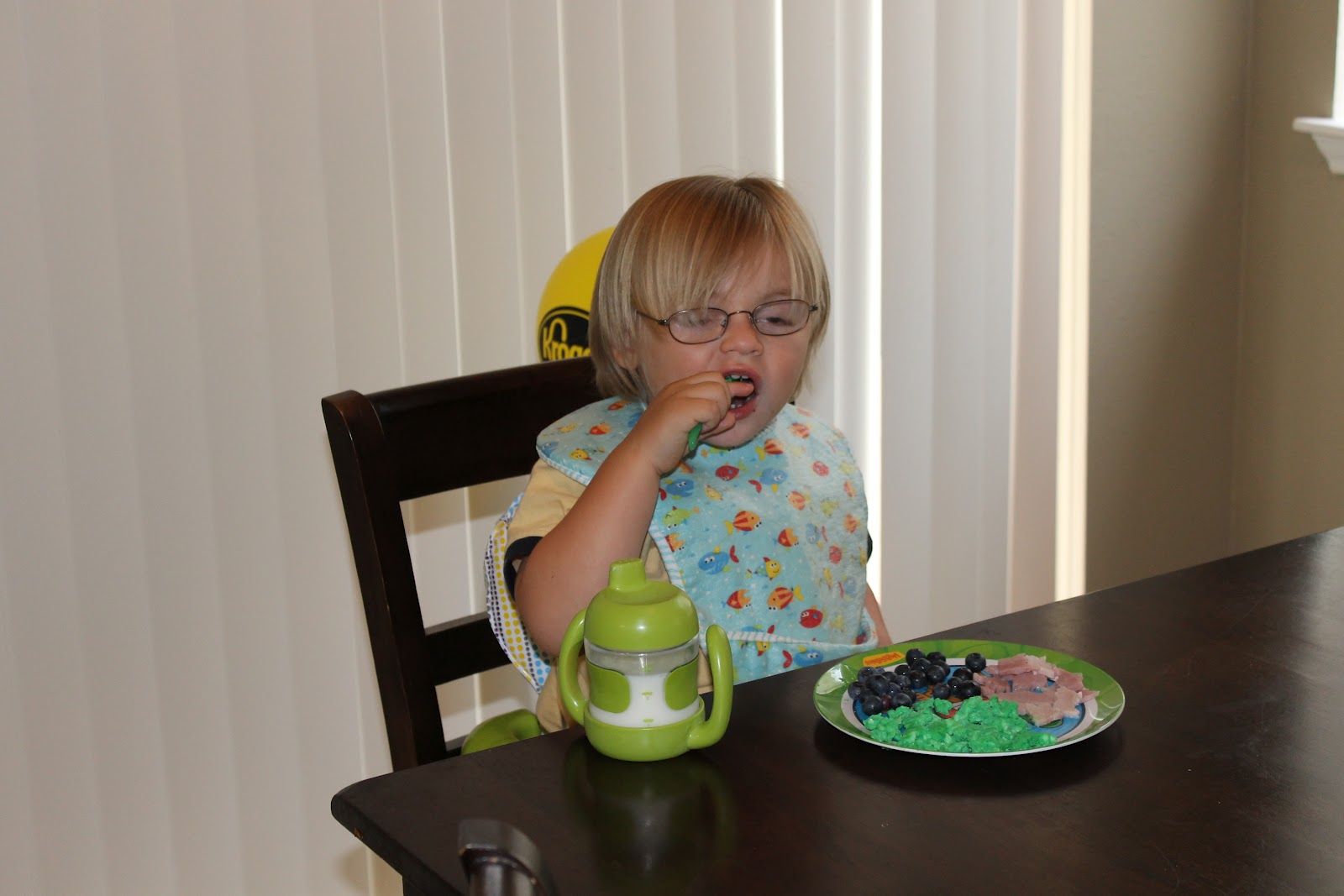 To help bring the story to life for Gabe, we made green eggs and (and blueberries) for dinner last night. He ate the eggs much faster than usual, and reading the book while he ate was definitely an added bonus!